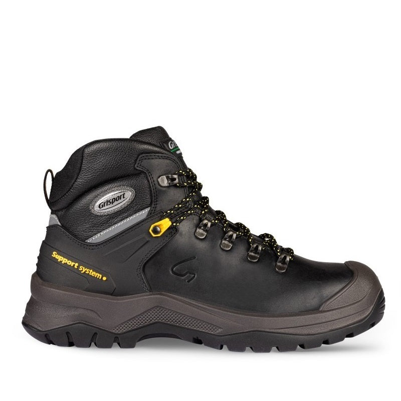 De Grisport 70416L voldoet aan de S3-veiligheidsnorm en is uitgerust met een stalen neus voor bescherming tegen vallende objecten en een stalen antiperforatie tussenzool om penetratie van scherpe voorwerpen te voorkomen. Het innovatieve Heel Support System® biedt extra stabiliteit en hielondersteuning, waardoor het risico op blessures wordt verminderd. De PU/Nitril-zool is slipvast (SRC-norm), slijtvast, antistatisch en bestand tegen contactwarmte tot 300°C, waardoor deze schoen geschikt is voor uitdagende werkomstandigheden, inclusief omgevingen met oliën en chemicaliën. Reflecterende details verbeteren de zichtbaarheid voor extra veiligheid, en de uitneembare inlegzool zorgt voor persoonlijk comfort en de mogelijkheid tot aanpassing.