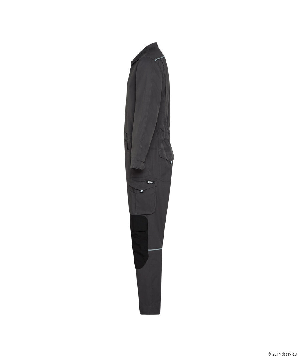 De DASSY® Moneo overall met top-loading kniezakken is ontworpen voor eenvoudig aan- en uittrekken, zelfs over andere kleding, dankzij de 2-way verborgen ritssluiting. Rugplooien en een elastische taille bieden natuurlijke bewegingsvrijheid, terwijl verschillende binnen- en buitenzakken voldoende opbergruimte geven. De industriële wasbaarheid van het model en het aandeel gerecycled materiaal, waaronder 20% post-consumer textielresten, maakt DASSY® Moneo een duurzame alles-in-één outfit.